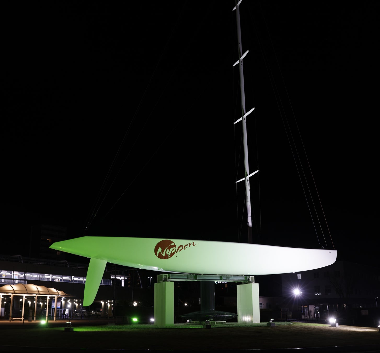 ・蒲郡駅南口ヨット「ニッポンチャレンジ号」を緑色にライトアップ