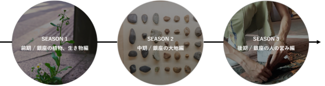 ウィンドウアートを起点に、銀座の”植物、生き物”から”大地”、”人の営み”へと3フェーズで表現