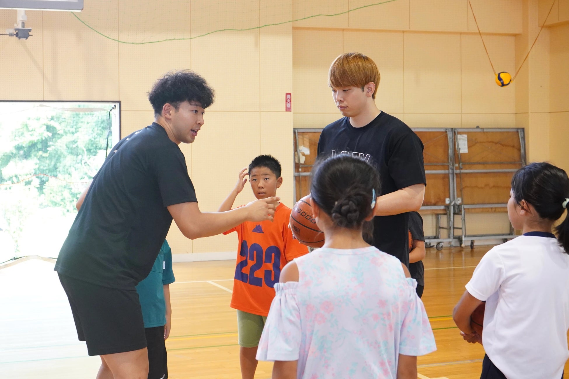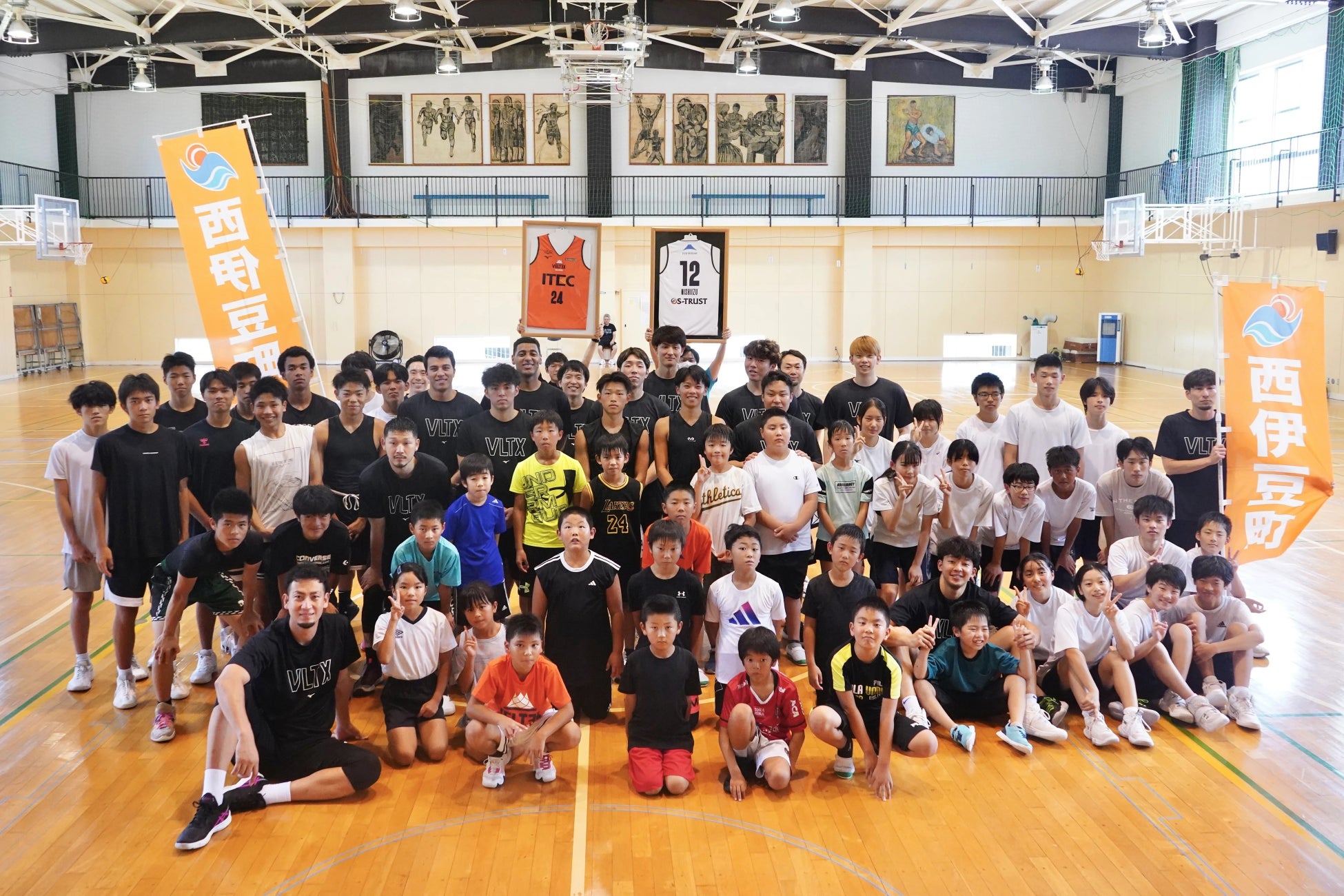 西伊豆町立西伊豆中学校にて、西伊豆町の小学生から高校生を対象としたスポーツ教室を実施し、選手・チームスタッフが子どもたちにバスケットボールのクリニックを行いました。