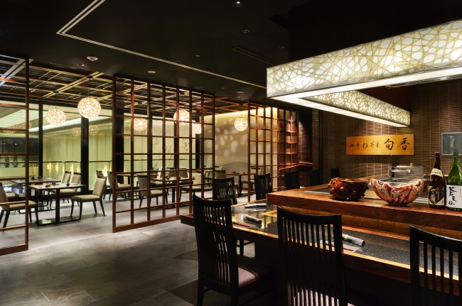素材がもつ旨みをいかした炙り&鉄板焼き料理をご用意しています。躍動感のある炙り&鉄板焼カウンターでは料理ライブならではの迫力を、広々と開放感のあるダイニングスペースでは、ゆったりとおくつろぎいただけます。また、お食事と一緒にお楽しみいただける日本酒や焼酎など飲み物も豊富に取り揃えています。