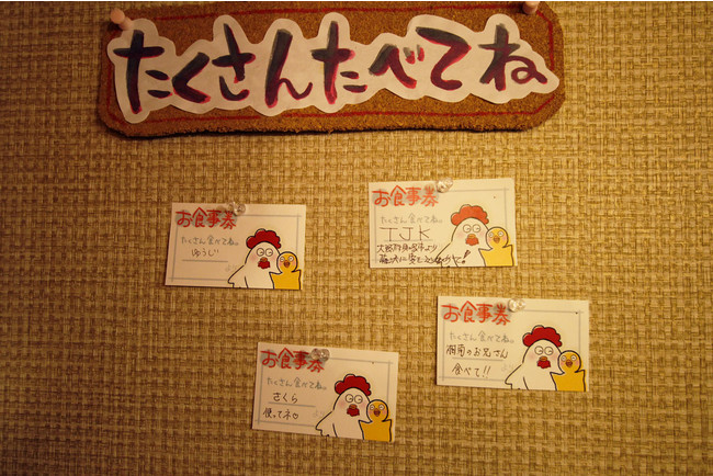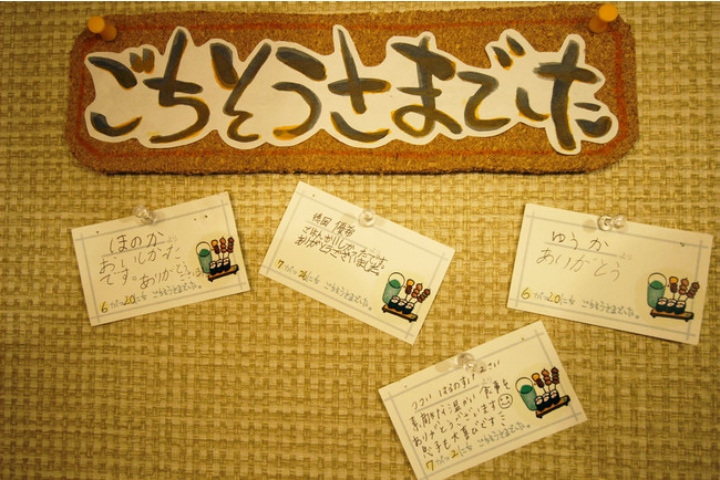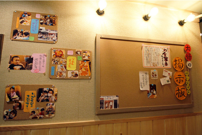 さらに、ご来店したお客様が300円で一食分となるチケットを店内で購入、メッセージを書いて「おむすびだいご掲示板」に貼ると、子どもはいつでもそのチケットをはがして大悟の定食が食べられる仕組みです。