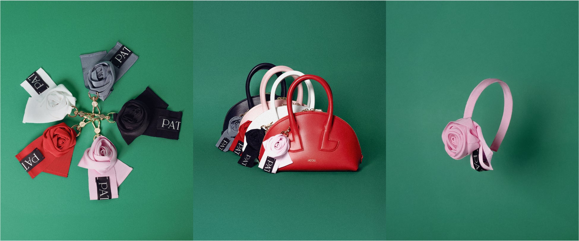 2025年春夏コレクション「ローズ」からインスピレーションを得たハンドメイドのグログランチャームとヘッドバンドは、パトゥのクチュールの伝統と革新への敬意を表しています。これらのアイテムは、「パトゥ」の社内クリエイティブチームと大阪文化服装学院の学生たちが協力して、日本にてハンドメイドで仕上げました。素材には「パトゥ」のスリーピングストックを使用。売上の一部は、「国際NGOプラン・インターナショナル」を通じて、支援を必要とする子どもや女の子に寄付されます。ローズチャームはレッド、ピンク、スカイブルー、ネイビーブラック、ホワイトの5色展開。ローズヘッドバンドはレッド、ピンク、ネイビーブラック、ホワイトの4色展開です。