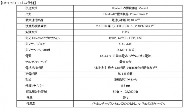 【SE-C7BTの主な特長】