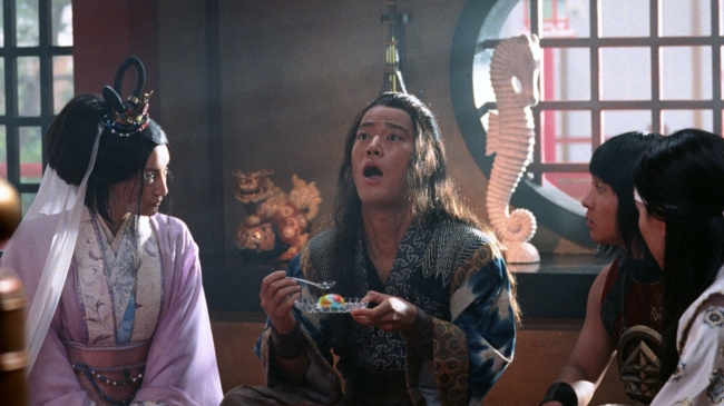 桃太郎(松田翔太さん)、浦島太郎(桐谷健太さん)、金太郎(濱田岳さん)は連れだって乙姫(菜々緒さん)のいる竜宮城へ。すると乙姫が竜宮城の新作メニューとして、「竜宮城ぷるぷる」を三人のもとへ持ってきます。乙姫に勧められてさっそく浦ちゃんが一口食べると、あまりのぷるぷる感に「なんかこれヤバイ!」とひとこと。そして妄想の世界へ。