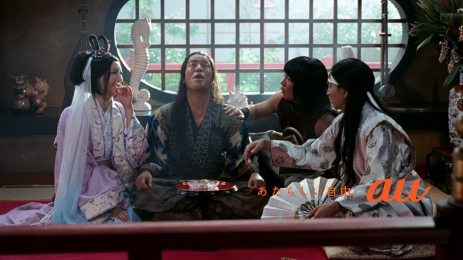 <auのCM三太郎シリーズ「竜宮城ぷるぷる」篇>竜宮城に夏の新作メニュー「竜宮城ぷるぷる」が登場ぷるぷるセクシーな乙姫の唇とダンスに、浦ちゃんまでぷるぷるに!?