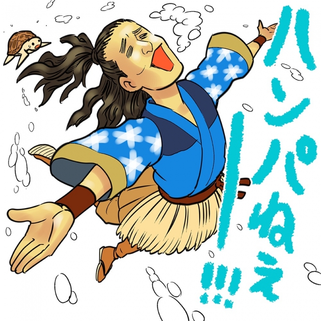 浦島太郎の妄想の中で乙姫はセクシーに「ぷるぷる~」と唄いながら竜宮城の舞を披露。それに乗せられて浦ちゃんも一緒にぷるぷる~と踊りだします。乙姫の「ワッショイ!」という掛け声にも浦ちゃんは恍惚状態。