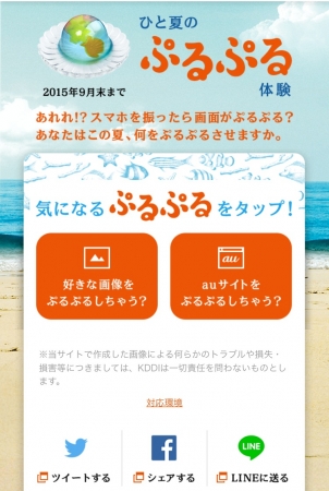 特設サイト内からお好きな画像、もしくはauのサイトを選択しぷるぷるさせてお楽しみいただけます。