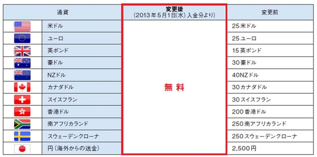 【適用開始日】 2013年5月1日(水)にソニー銀行の口座に着金となる被仕向け送金分より