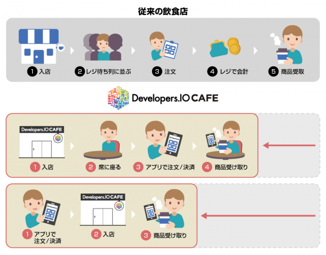 ・モバイルオーダー対応によりレジ待ち・現金支払いなし