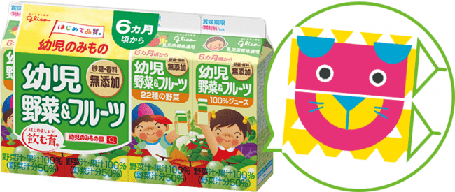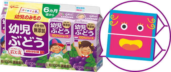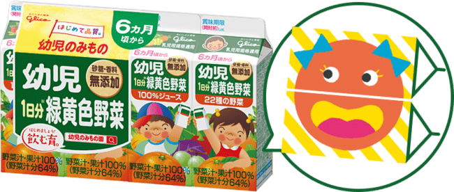 グリコの「幼児のみもの」は、生後6ヶ月頃から飲める素材選びにこだわった子どものための飲みきりサイズ飲料です。香料無添加による味覚形成や果汁・野菜汁100%による栄養補給のサポート、パッケージの工夫による“ひとり飲み”の応援など、心と体を育み、笑顔あふれる親子でいっぱいにする“飲む育”を提唱しています。