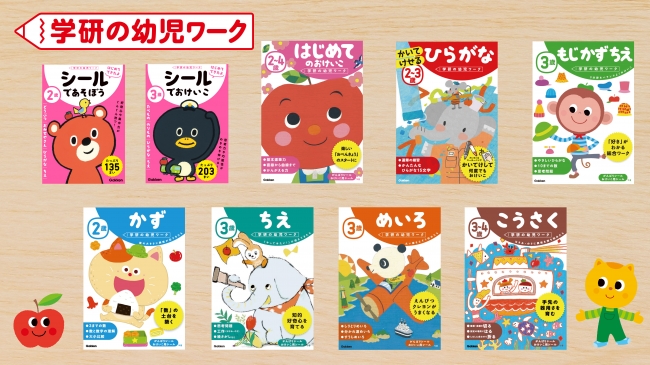 累計発行部数4700万部、学研プラスより発刊されている2~6歳向けの年齢別ワークブックです。「ひらがな」「かず」「めいろ」など、シリーズ全57点。全国の書店、ネット書店で販売中です。