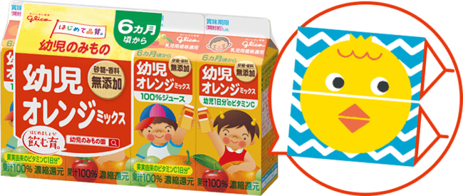 飲用開始目安が6ヵ月頃からで、果汁・野菜汁100%等の素材選びにこだわったお子さまのための飲みきりサイズ飲料です。「はじめましょう!飲む育」をテーマに、「飲む」ことと「遊ぶ」ことを通じて、子どもたちの健やかな成長と毎日を支え、ママ、パパ、みんなの笑顔を育みます。全品無香料で素材の味わいを感じられる安心の中身品質は、味覚形成期のお子さまの「はじめてのジュース」にぴったりです。またパッケージには、紙パックの中央部分を強く握っても中身が飛び出しにくい強度や倒してもこぼれにくいストロー穴、怪我をしにくいストロー断面形状などの工夫がされ、子どもが一人で使用しても安心して見守れる安心設計が施されています。
