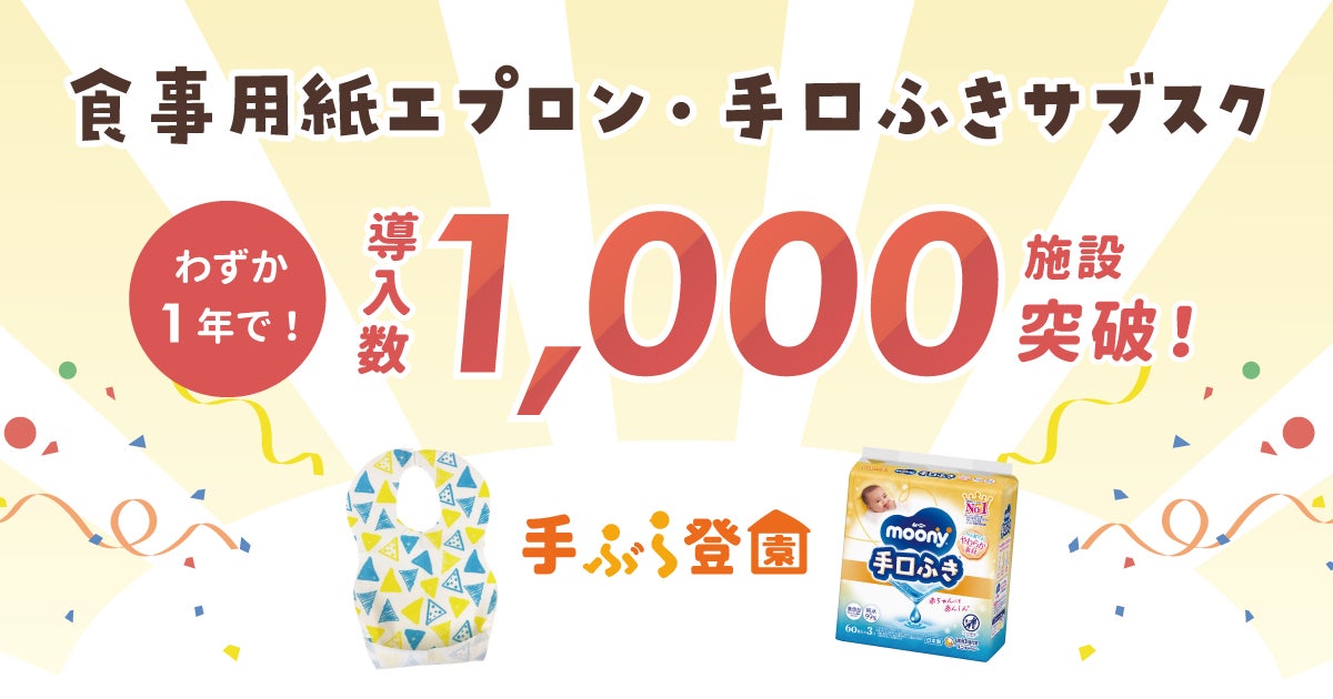 子育て支援サービスを展開するBABY JOB株式会社は、紙おむつとおしりふきのサブスク「手ぶら登園」のオプションサービスである食事用紙エプロン・手口ふきサブスクを導入している保育施設が全国で1,000を超えたことをお知らせいたします。