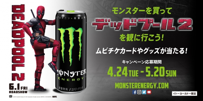 モンスターを買って、話題沸騰の最新作『デッドプール 2』の映画鑑賞ペアチケットを手に入れろ!<イトーヨーカドー限定>「モンスターを買ってデッドプール2を観に行こう!」キャンペーン開催