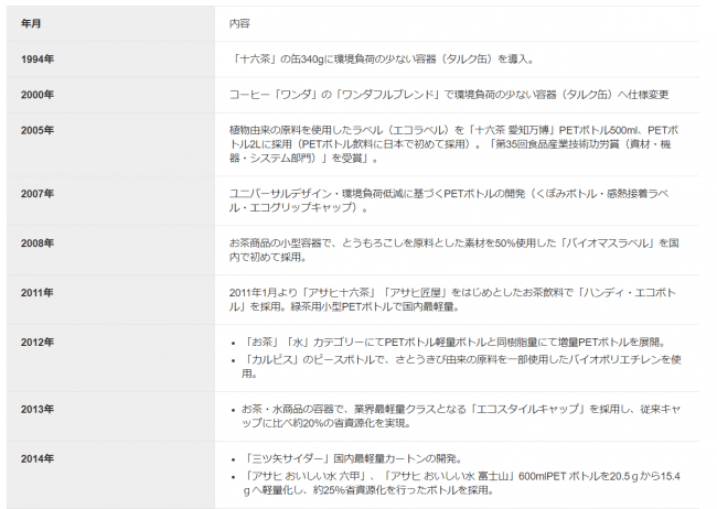 環境負荷削減に関するこれまでの容器包装の取り組み