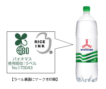 また昨年より「ライスインキ」をラベルの印刷に使用しています。ライスインキは、国産の米ぬかから搾油する際に生じる絞りかすを原料に合成された樹脂を使用しており、従来の石油を原料に使用したインキに比べ環境負荷の低減が期待できる技術です。尚、ライスインキを資材に使用した商品の発売は清涼飲料業界で初の試みとなります※。