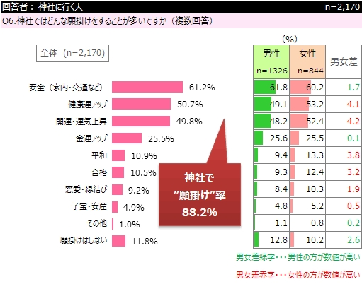 ~ 神社に行く人の願掛け率は88.2%。70代以上の8割は「お寺」または「神社」によく行く ~