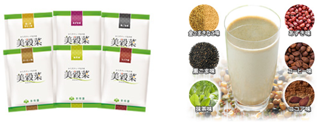 穀物の香ばしさと黒糖のやさしい甘さに、抹茶・あずき・きなこなどの和の素材の風味もある、6種類の味をご用意しております。味のバリエーションが豊富で、飽きずにおいしく続けていただけます。