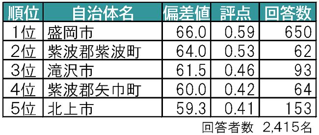 ○住みここち1位に盛岡市、2位に紫波町がランクイン