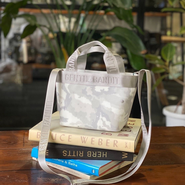 9周年モデルは”GENTIL BANDIT”ロゴ入りのオリジナルナイロンテープを使った舟型トート。従来のレザーハンドルとは違ったカジュアルな装いですが、サテン調の光沢のあるナイロンテープを使用することにより、高級感を演出します。カラーは全3色。定番のカーキカモ、ブラックカモと昨年大好評だったホワイトカモが今年も登場。普段使いに最適な2サイズのラインアップ。