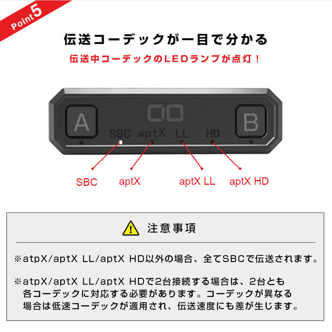 対応コーデック:SBC、aptX、aptX LL、aptX HD