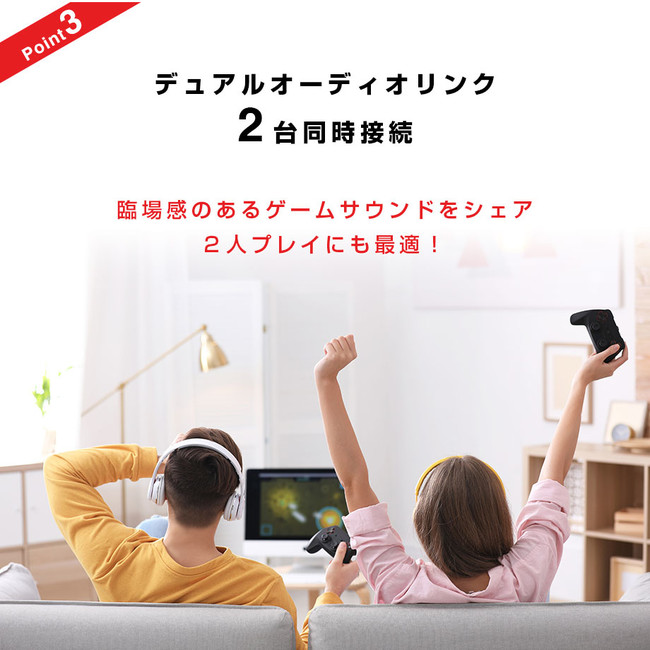 また最大2台のBluetoothデバイス(イヤホン・ヘッドフォン・スピーカー等)に接続可能。友人や家族と一緒にゲームプレイしながら迫力あるサウンドをシェアして楽しむことができます。