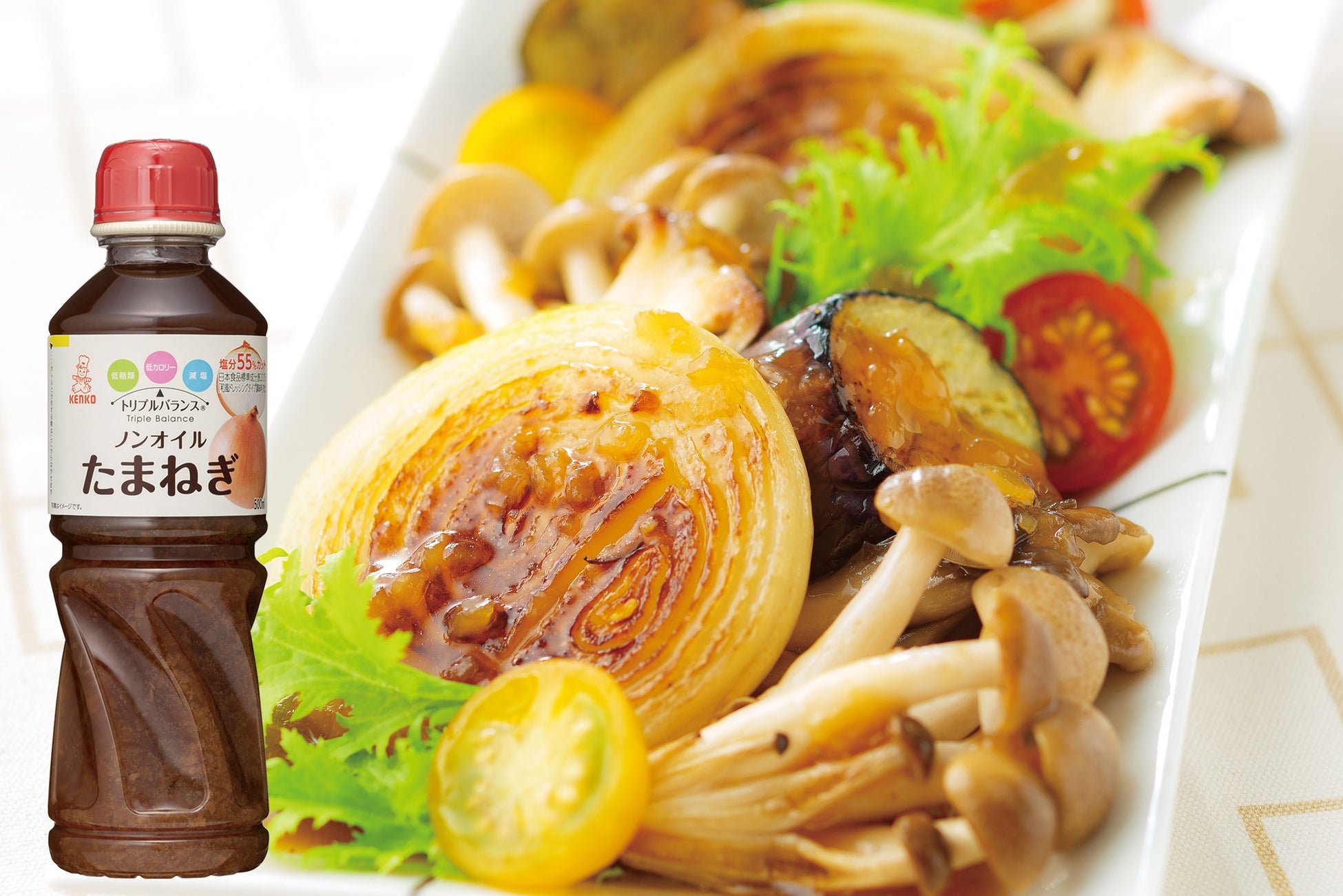 健康志向のニーズにこたえるノンオイルドレッシング。たまねぎとしいたけをあわせて20%以上使用し、満足感にこだわりました。かつおの風味豊かなしょうゆベースです。