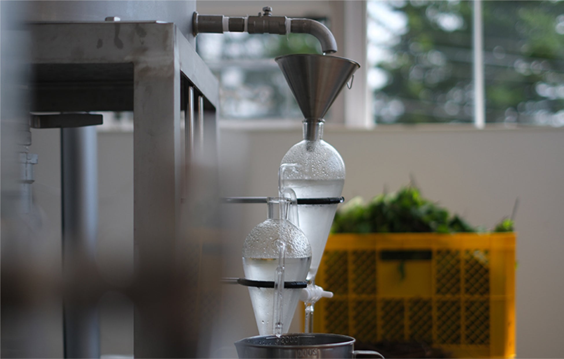 5月中旬に北海道愛別町の森で間伐した白樺の若葉を収穫し、この春、北海道長沼町にオープンした「MAISON SHIRO」のシロラボラトリーで蒸留しました。シロラボラトリーは日夜研究開発に明け暮れる工場とは異なり、SHIROの暮らしを体感できる日常の一部にあります。ここで蒸留をするからこそ、ダイレクトに自然と触れ合う中でのものづくりが実現しました。
