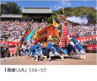 2日目は380年の歴史を誇り重要無形民俗文化財にも指定されている「長崎くんち」をご鑑賞いただきます。長崎2大祭りの一つである「長崎くんち」は異国情緒豊かな長崎ならではの勇壮な祭りです。今回のツアーでは諏訪神社での奉納踊りを堪能いただけるSマス席をご用意しました。