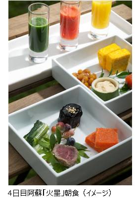 ご希望のお客様は朝食までの間、専用バスに乗車し阿蘇の自然の風景を楽しめる「草千里バスプラン」にご参加いただけます。朝食は、阿蘇駅のホームにあるレストラン「火星」にてお召し上がりください。その後、列車は大分駅に移動し、車内では昼食がふるまわれます。 由布院駅では途中下車の散策を楽しむ事ができ、自由に観光をお楽しみいただけます。その後、列車は博多駅に向かって動き始めます。博多駅が近づいたら、いよいよ列車の旅もクライマックス。列車内では旅を振り返る、締めくくりのイベントが催され、それぞれの思い出を胸に旅のフィナーレを迎えます。