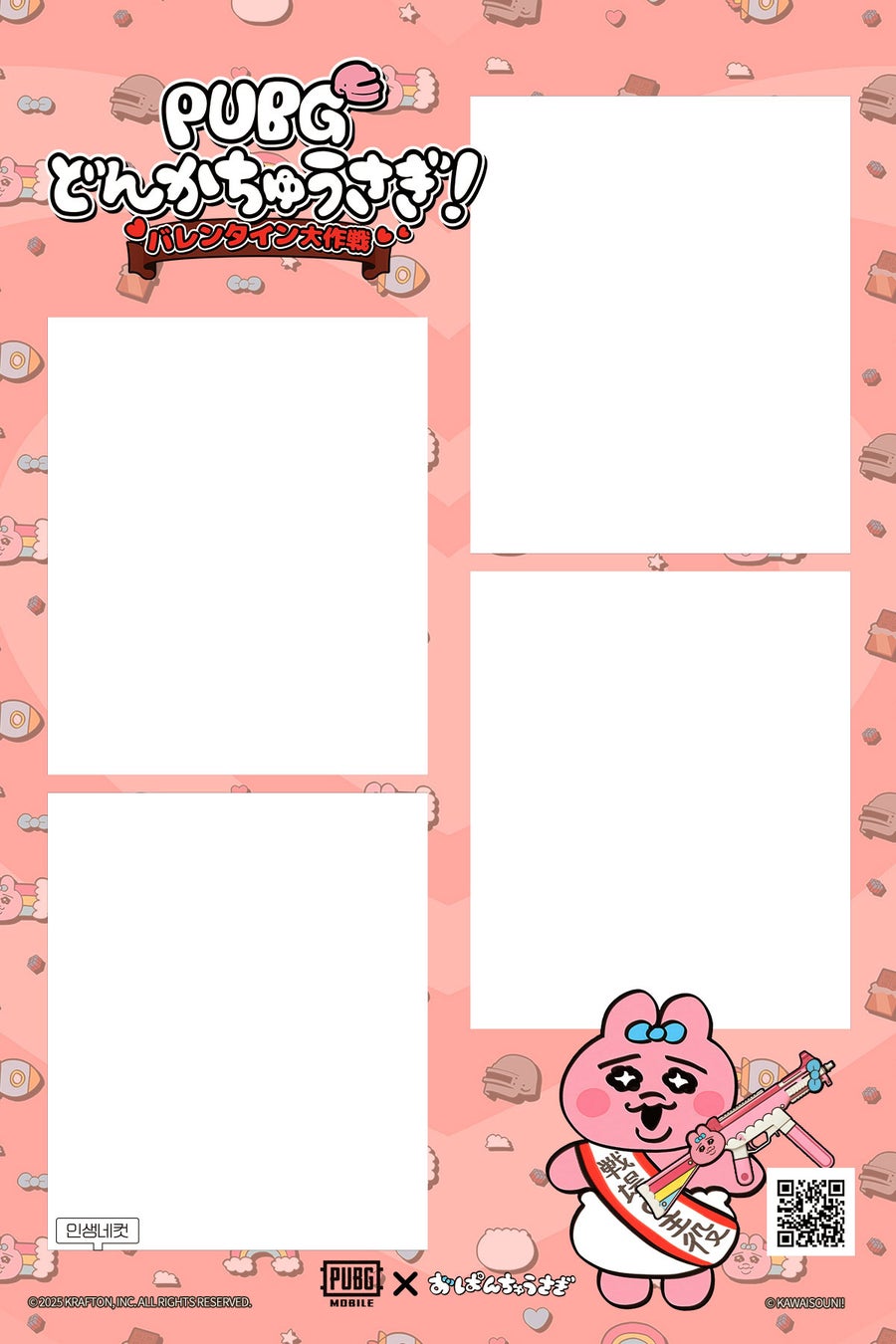 KRAFTON JAPAN株式会社(代表取締役 イ・カンソク)は、『PUBG MOBILE』と大人気キャラクター『おぱんちゅうさぎ』によるコラボイベント『PUBG どんかちゅうさぎ!バレンタイン大作戦』 を、2025年2月8日(土)・9日(日)に、SHIBUYA109渋谷店 店頭イベントスペースにて開催いたします。イベントでは、オリジナルフォトスポットや、大人気の韓国式プリクラ「人生4カット」にオリジナルデザインが施されたスペシャル体験など、PUBG MOBILE×おぱんちゅうさぎのコラボレーションを存分に楽しめるコンテンツをご用意。さらに、本イベントを体験いただいた方を対象に、限定コラボデザインのオリジナルパーカーが当たるキャンペーンも実施いたします。大人気のゲームとキャラクターのコラボイベントをぜひお楽しみください。