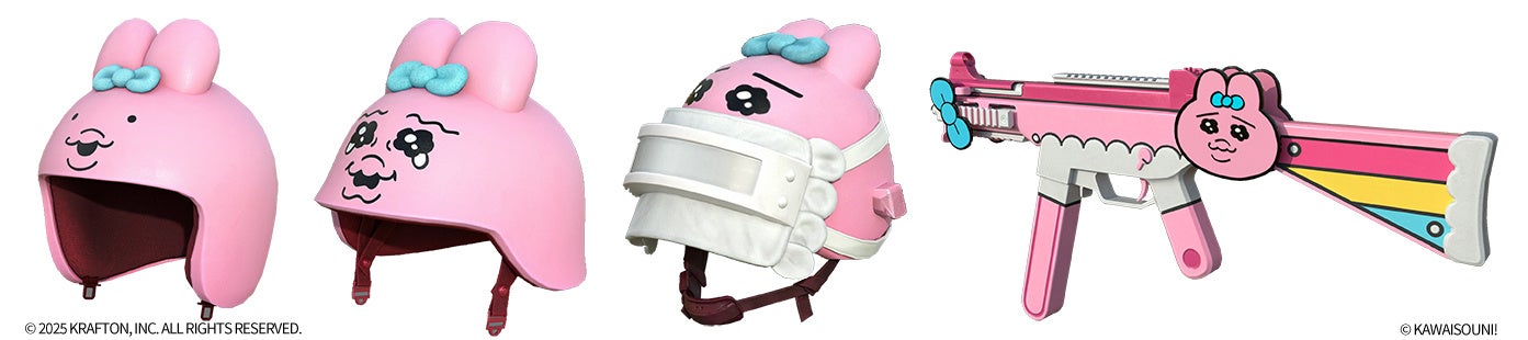 PUBG MOBILEの世界にやってきたおぱんちゅうさぎと一緒に、写真を撮れるフォトスポットを設置します。コラボヘルメットやコラボ銃器のアイテム4種もご用意。好きな装備を身に着け撮影することが可能です。