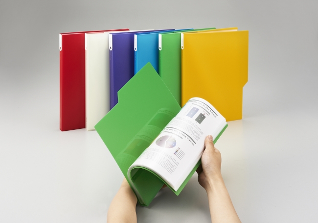 クリアーファイル「パラリ(透明)」は、裏表紙に柔らかい素材を採用したことで、裏表紙とポケットを一緒にしならせることができ、雑誌のようにパラパラとめくりながら閲覧できる新感覚のファイルです。