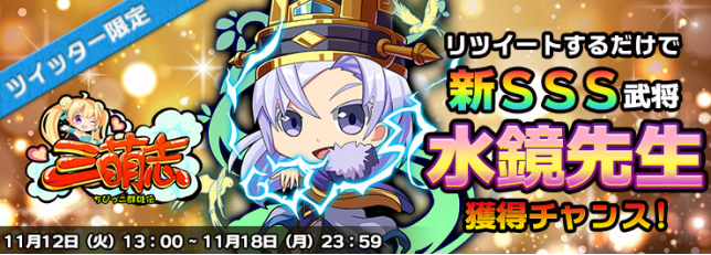 ★★ツイッター限定!新SSS武将水鏡先生獲得チャンス★★