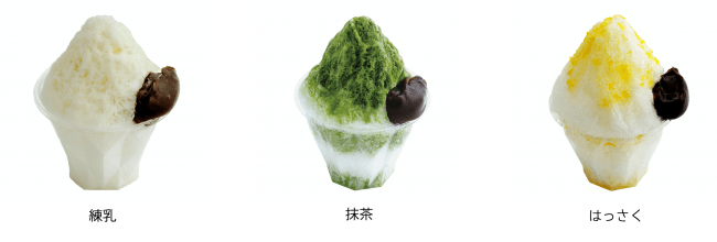 練乳・抹茶・はっさくの3種類の味をご用意しています。気分に合わせてお選びください。さらに今年はあんペーストが「こしあん」となっており、黒糖とメープルシロップの風味をお楽しみいただけます!お好みで自家製練乳や白玉のトッピングもできますので、自分好みにアレンジをお楽しみください。