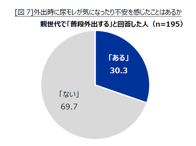 ◆3割が「外出時、尿モレが気になったり、不安を感じた」経験あり。