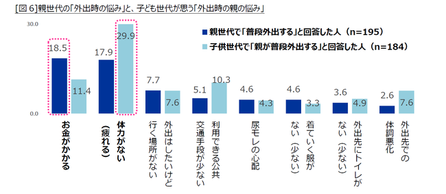 ◆ 子どもが思うより、親は元気!親世代にとって外出時の悩みは「お金がかかること」