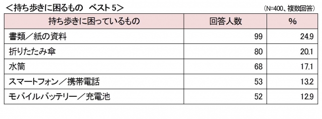 ■持ち歩きに困っているものNo.1は、「書類/紙の資料」