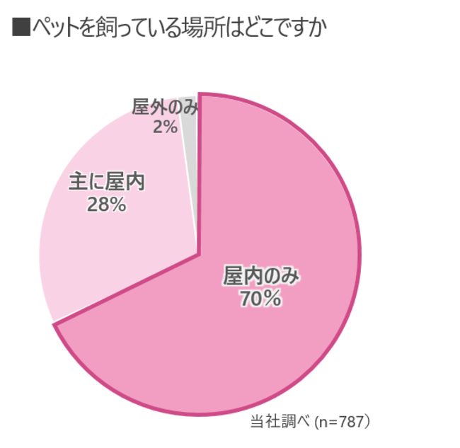 屋内のみ(70%)、主に屋内(28%)と大多数が屋内で飼育していることがわかりました。