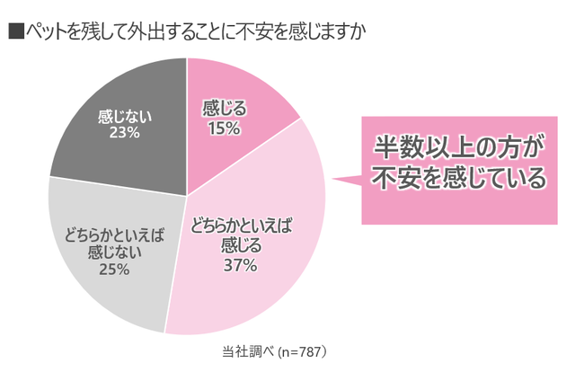 不安を感じる(15%)どちらかといえば感じる(37%)とペットを室内に残して外出することに不安に感じているオーナーが半数以上いることがわかりました。