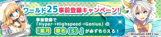 期間中に「メガミエンゲイジ!」ワールド25に事前登録していただいたユーザー全員に【ういんどみる】の人気作「Hyper→Highspeed→Genius』の「葉月 翠名(S)」をプレゼントします!
