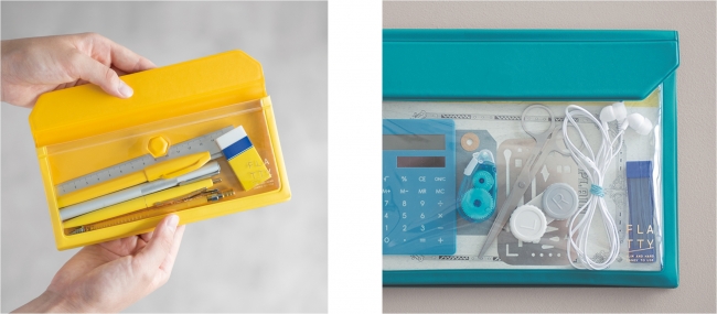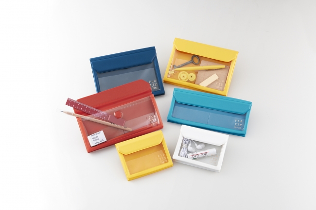 今回、バッグインバッグ「フラッティ」シリーズに、カードサイズ・ペンケースサイズ・A6サイズを新たに追加します。カードサイズは名刺やイヤホンなどの小物、ペンケースサイズは筆記用具やチケット、A6サイズはハガキや写真などの収納に最適です。カラーは、赤・黄・水色・ネイビー・白の5色です。