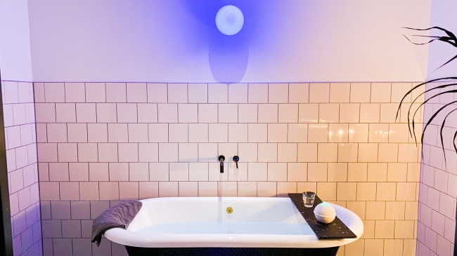 このトリートメントは椅子に座った状態で受ける頭皮や首、肩の施術、「Tales Of Bath」のために開発された非売品の限定バスボムを使った入浴、抱き枕を抱え横たわった姿勢でのボディトリートメントの三部構成となっています。また、このトリートメントで重要な要素となっているのは、おとぎ話の舞台となったバース出身のミュージシャンたちが制作した音楽と、洞窟の中の水の音など、所縁の場所でレコーディングした自然が奏でる様々な音色です。天井には水面が投影され、トリートメントルームには水の音が響き渡る中、スパセラピストの音楽と調和したダンスのようなリズミカル且つ滑らかな動きを感じると、まるで日常からかけ離れた別次元に連れ出されるような感覚に包まれます。