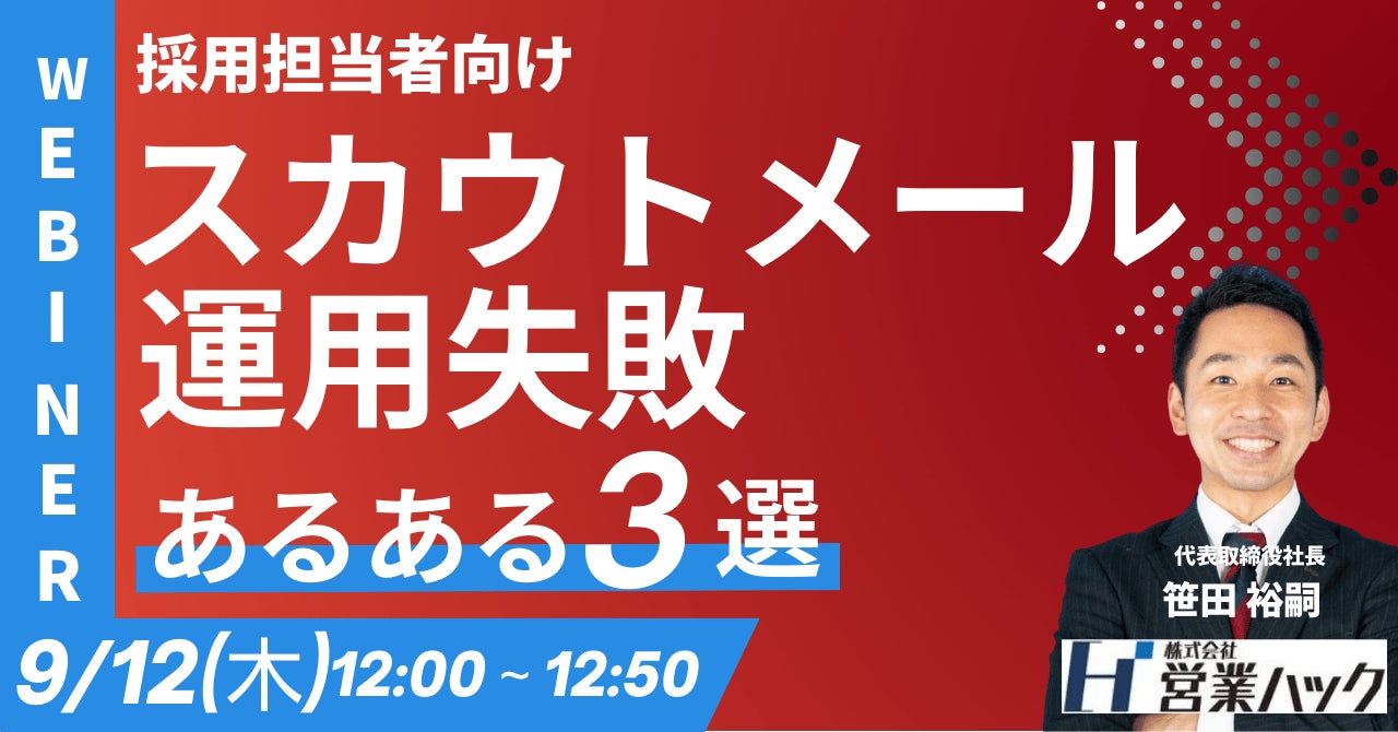 なぜそのメールは求職者に刺さらない?スカウトメール活用のコツをお伝えします《9/12(木)12:00~無料オンラインセミナー》