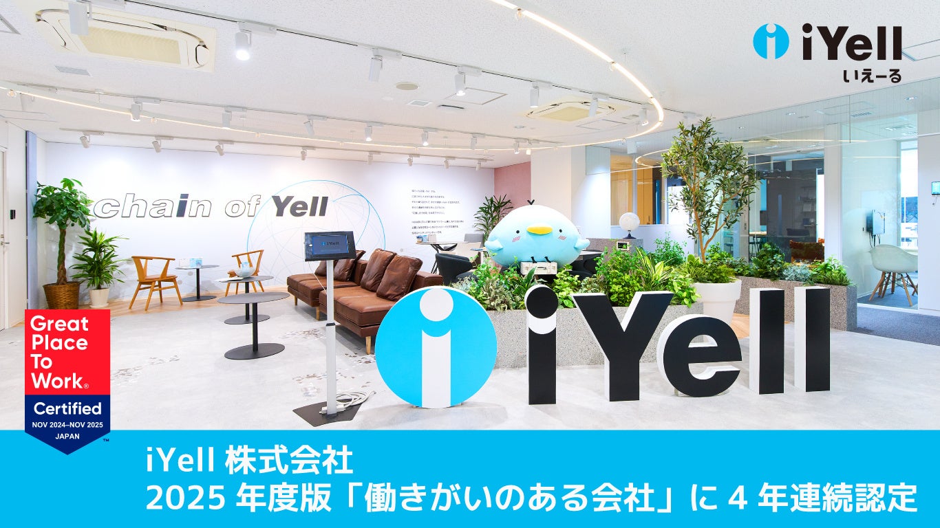 iYell株式会社(本社:東京都渋谷区、代表取締役社長 兼 CEO:窪田光洋、以下「iYell」)は、Great Place to Work® Institute Japan(以下「GPTW Japan」)が実施する、2025年版「働きがいのある会社」に4年連続認定されました。