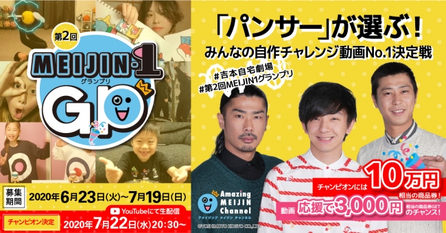 第2回となる「MEIJIN-1グランプリ」は、パンサーが番組MCを務め、7月22日(水)20時30分にYouTube公式吉本興業チャンネルにて生配信します。