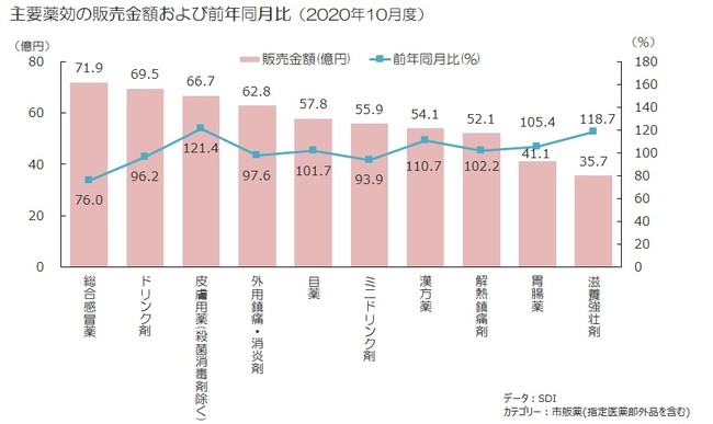 株式会社インテージヘルスケア(本社:東京都千代田区、代表取締役社長:仁司与志矢)は、全国一般用医薬品(OTC)販売動向調査のデータを基に、「2020年10月度 市販薬(※1)市場トレンド」を発表しました。
