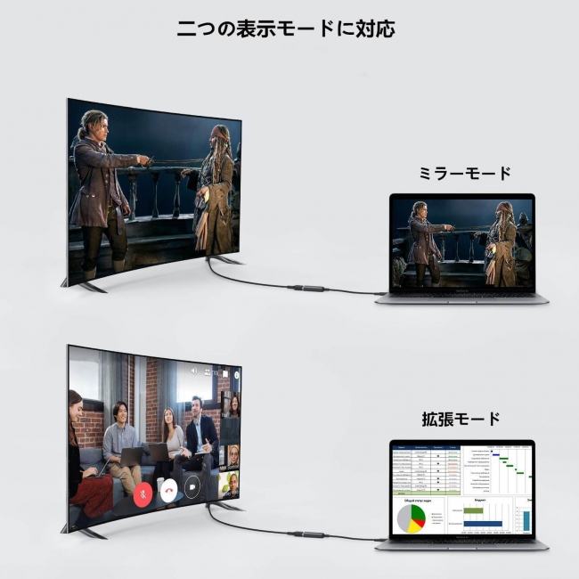 最大4Kの解像度に対応し、接続した外部モニターやテレビから鮮やかな映像を映し出します。ドライバーも電源アダプタも不要で、挿し込むだけで簡単に接続できます。また、コンパクトデザインですので、持ち運びに最適、オフィスや自宅はもちろん、外出先でもHDMI変換することで高品質な映像を楽しめます。