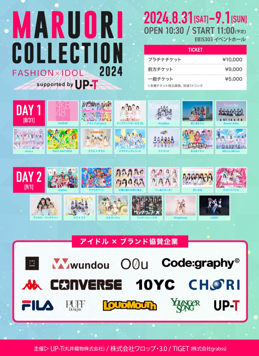 日本最大のテキスタイルメーカーであり、世界的なグローバルスポーツブランドのテキスタイル生産を行っているマルオリグループが提供するファッション×アイドルのエンターテイメントファッションショー『マルオリコレクション』開催決定。アイドルとの大型冠イベントなどを共催しているUP-Tが主催となっており世界有数のグローバルブランドを含めた数十社のブランドの協賛×AKBをはじめとするアイドルグループも参加するエンターテイメントファッションショーを開催します。