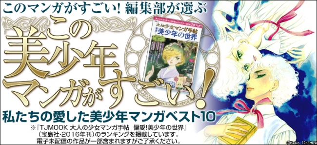 「この美少年マンガがすごい! 私たちの愛した美少年マンガベスト10」は、2016年3月刊行の『TJMOOK 大人の少女マンガ手帖 偏愛!美少年の世界』(宝島社)の記事をもとにした特集です。当時の文献や独自の取材をもとに選んだ名作を、「ここにトキメいた」ポイントとともに、ランキング形式で紹介しています。